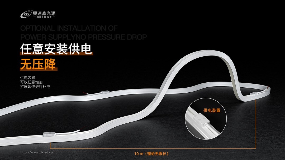 可任意添加供電裝置進(jìn)行補(bǔ)電,免烙鐵安裝,理論無(wú)限長(zhǎng)度.