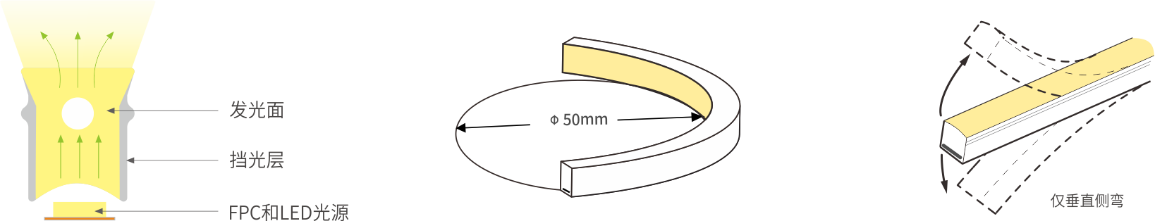 硅膠共擠技術(shù)一體成形設(shè)計(jì),發(fā)光效果均勻、柔和、無(wú)光斑,多種防護(hù)特性:耐鹽溶液、酸堿、耐腐蝕、防火、抗UV,優(yōu)異的耐候性能:在-40℃~+200℃內(nèi)保持正常的柔和狀態(tài),不會(huì)出現(xiàn)脆化、老化、變黃等等。